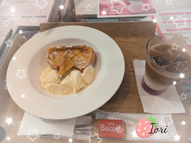 フレンチトースト、いちごラテ