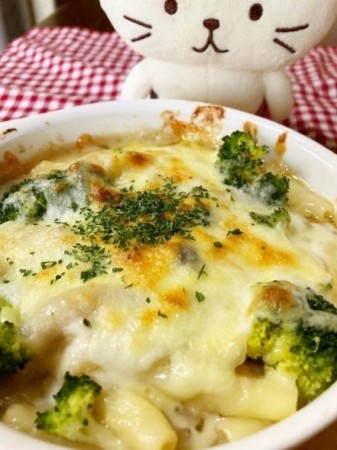 今日の夕飯は、先日作ったシチューのルーがまだ余ってたので、それを使ってマカロニグラタンを作りました♪