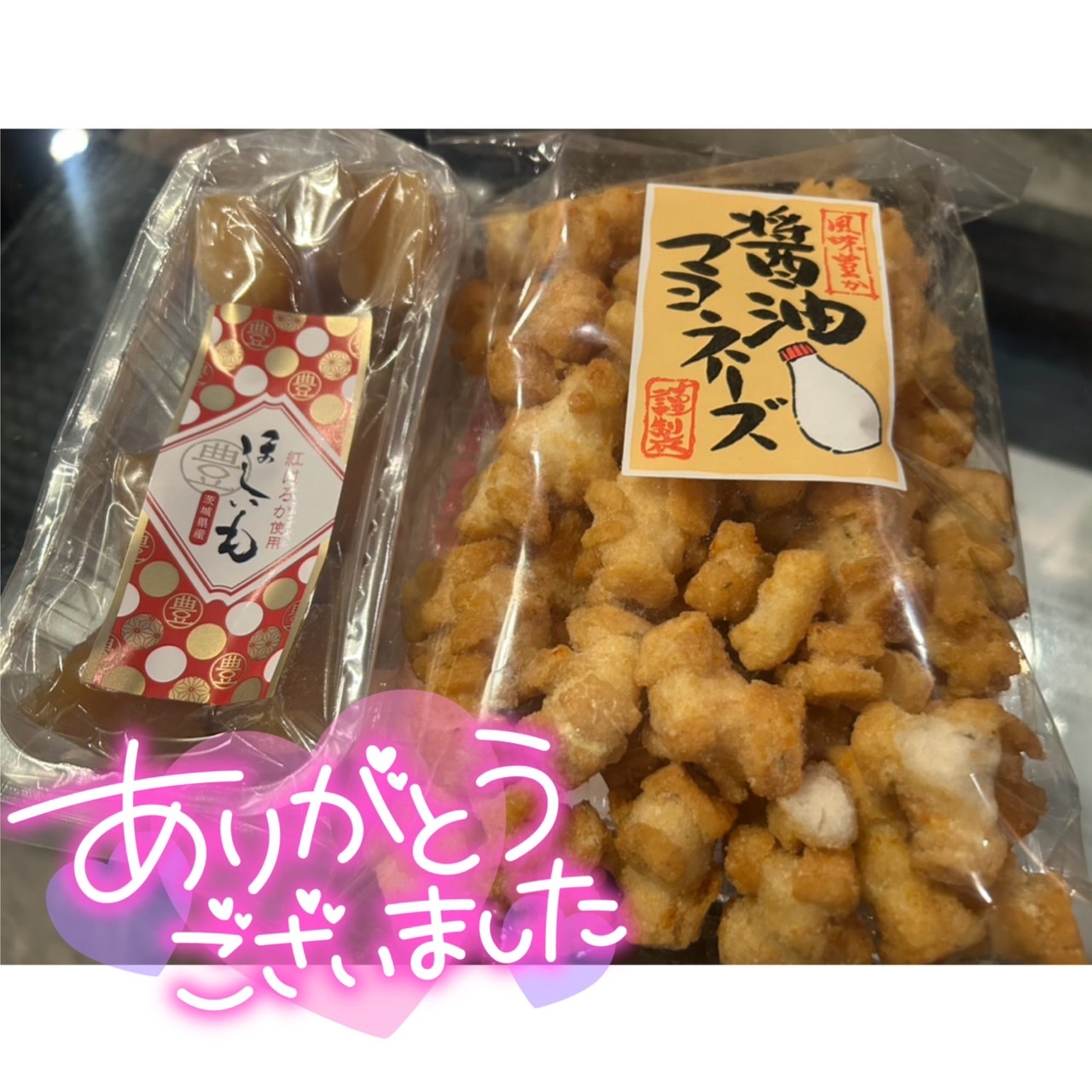 会いに来てくれただけで嬉しいのに差し入れまでありがとう💖干し芋大好きマンなの覚えてくれてて嬉しい🥺あとあと!!!