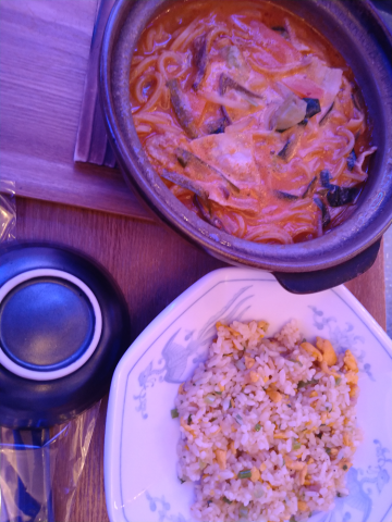 ?〆は坦々ラーメン鍋と半チャーハンを