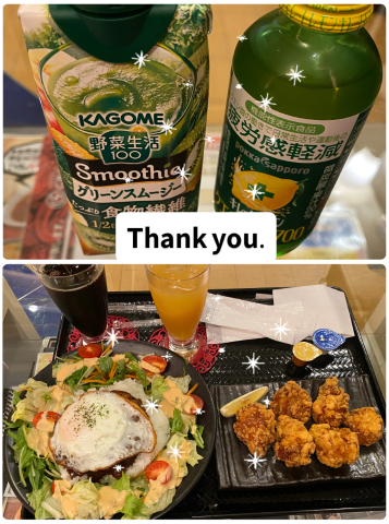 唐揚げとジュースを頼ませてくれて?