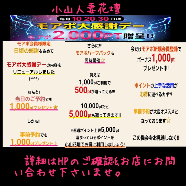 💡本日30日は【🆕モアポ大感謝デー】【🆕写真指名割引イベント】【11月ラインモアポ会員(】【ご新規割引】【口コミ投稿】開催日です🉐