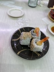 お寿司食べながら待ってますので